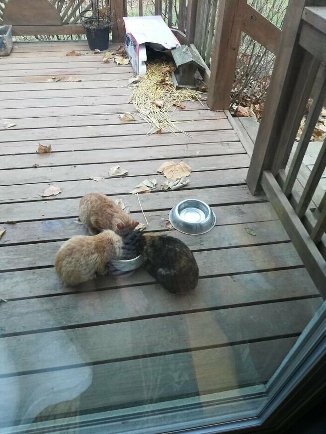 8. «Этот человек делает из выброшенных термоконтейнеров зимние убежища для бездомных кошек»