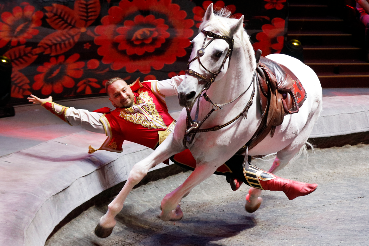 Серый жеребец по кличке Плут достиг почтенного возраста, 20-и лет, и был отправлен на заслуженный отдых. Он проработал на манеже цирка в номере под руководством Якова Экка целых 17 лет!