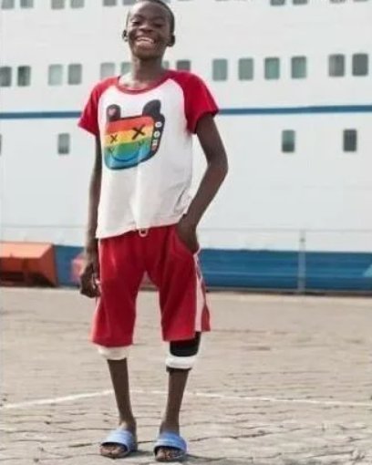 Улыбчивый жизнерадостный мальчик Ульрих родился в Африке с редкой деформацией нижних конечностей — контрактурой четырехглавой мышцы бедра. Из-за этого колени сгибаются в противоположную сторону.